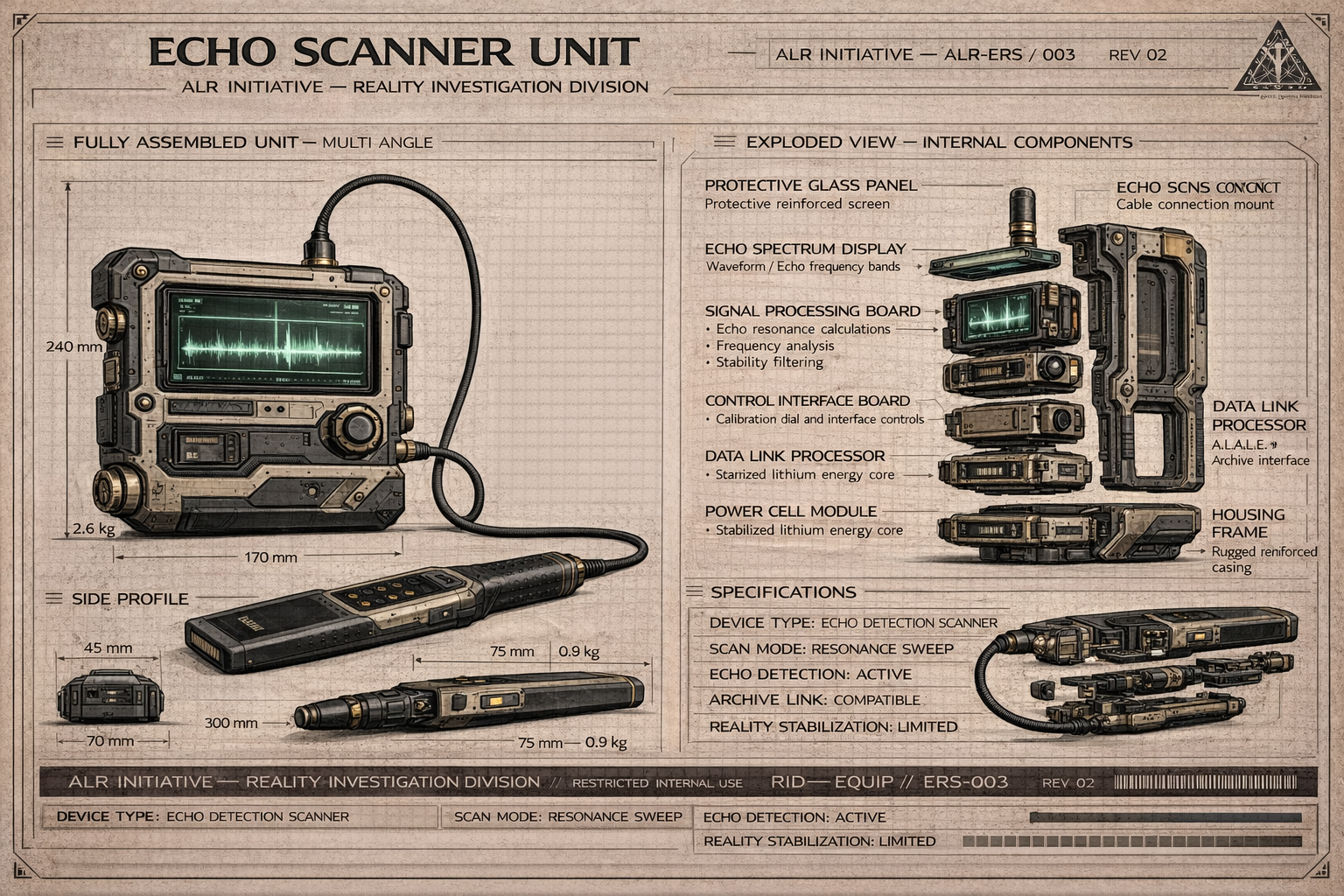The Echo Scanner Unit is considered standard equipment for personnel conducting field investigations. Most Echo discoveries recorded by the ALR Initiative have been made using this device. Without it, identifying Echo phenomena within unfamiliar environments would be significantly more difficult.